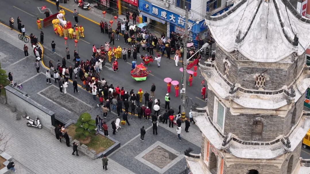 觀眾熊苗苗:很遠(yuǎn)就被鑼鼓喧天的場景給吸引了,看到有很多隊伍在演出,有年紀(jì)大的叔叔阿姨,也有很小的弟弟妹妹。這個場景真的非常熱鬧,讓人看著很開心,年味十足。