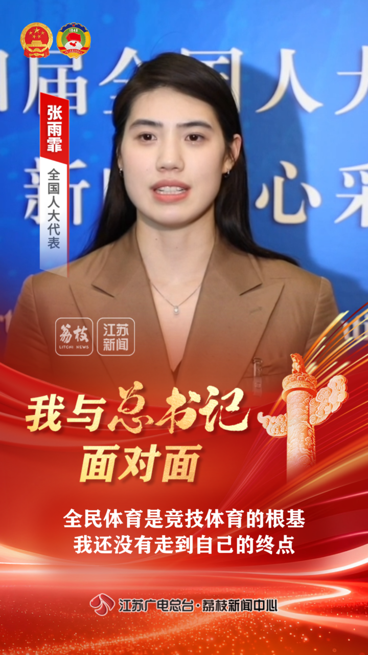南京體育學(xué)院游泳隊(duì)運(yùn)動(dòng)員、游泳學(xué)院副院長張雨霏代表,向總書記匯報(bào)了“蘇超”等大眾體育對競技體育的促進(jìn)作用,她自己參加奧運(yùn)的“戰(zhàn)績”和對未來征戰(zhàn)賽場的目標(biāo)和規(guī)劃。