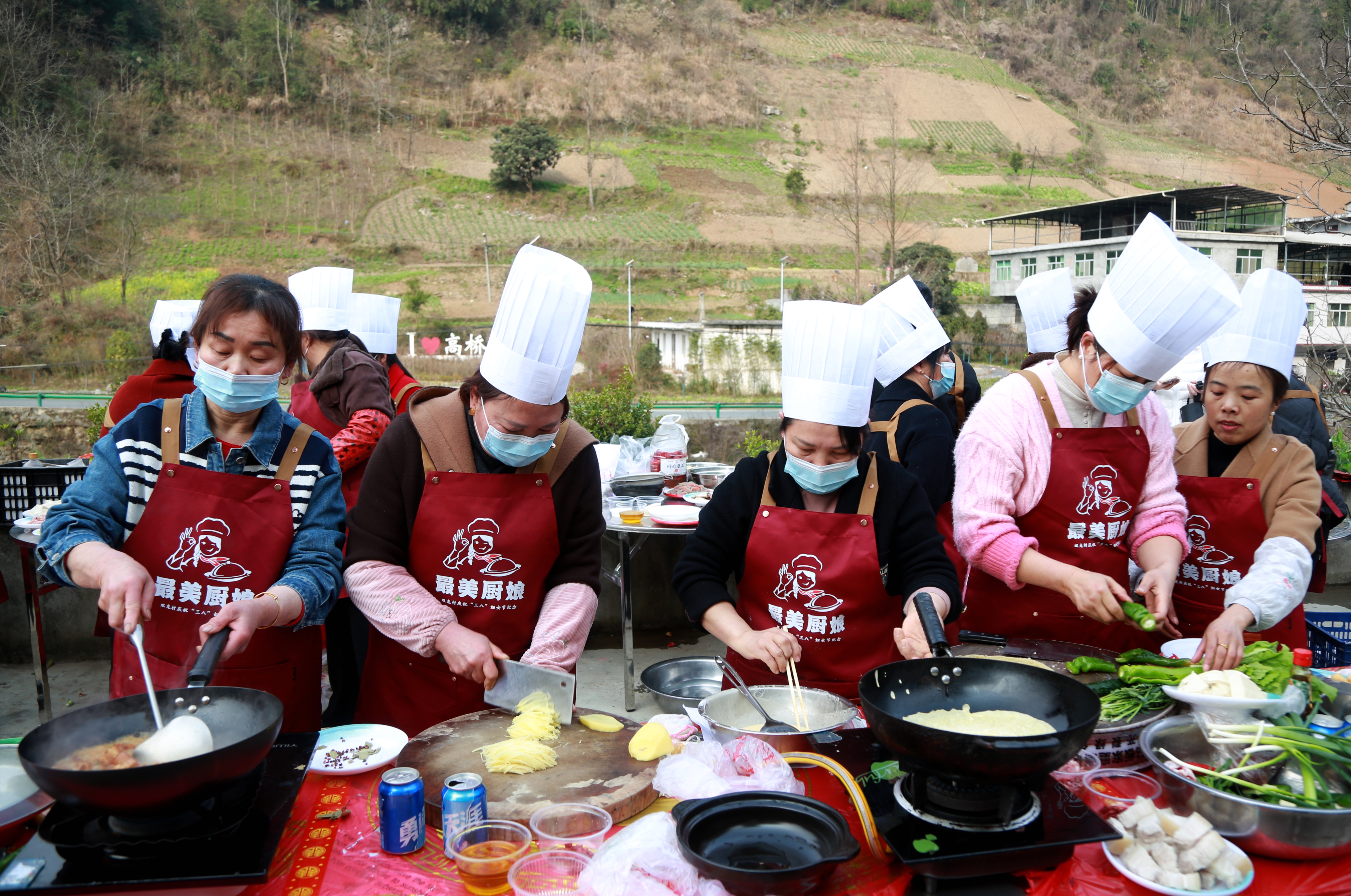紫陽縣高橋鎮(zhèn)雙龍村舉行最美廚娘爭(zhēng)霸賽,歡慶“三八”國際勞動(dòng)?jì)D女節(jié)。李謝軍 攝