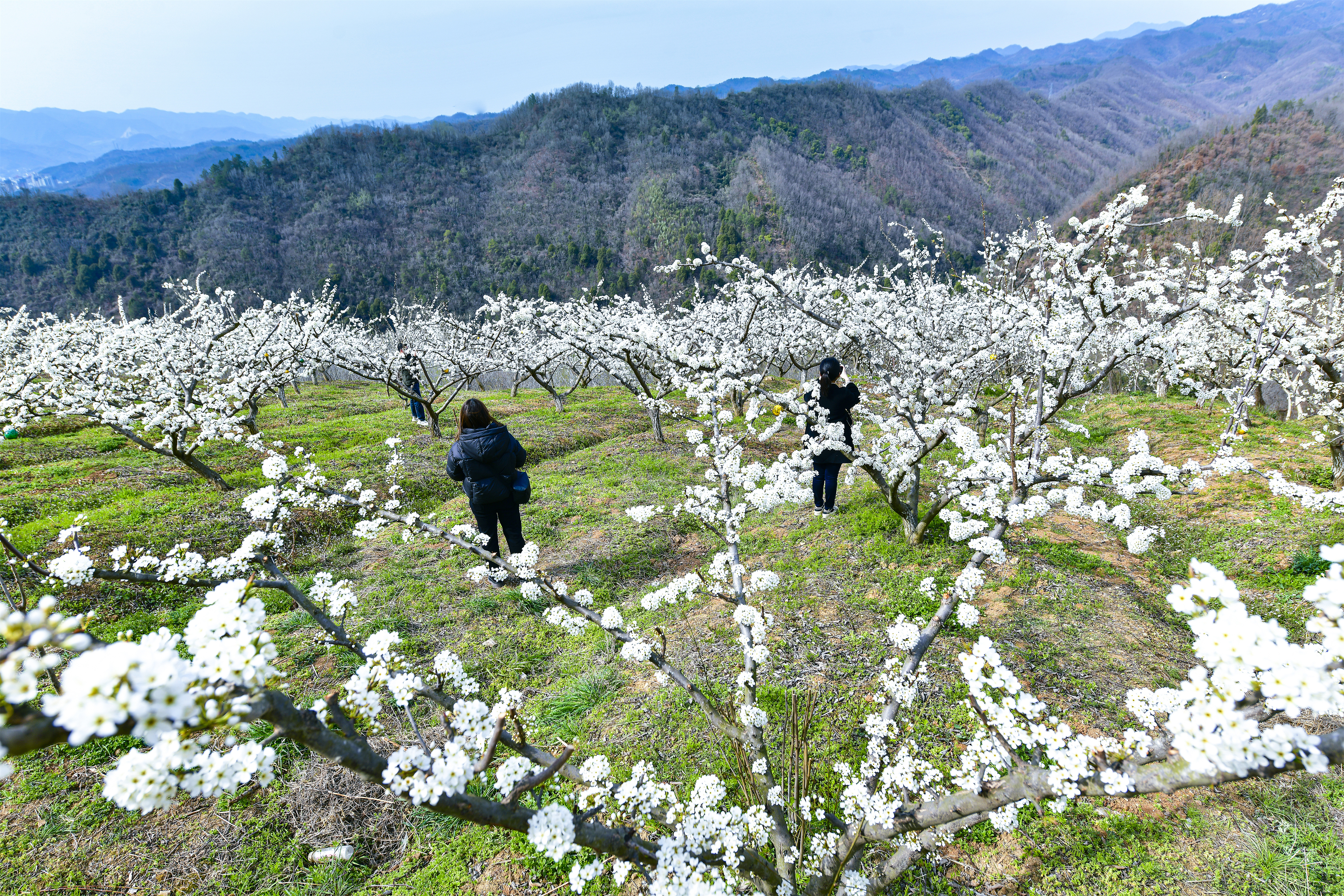 美景引得游人醉。不少游客慕名而來,徜徉在雪白花海間,或駐足細(xì)賞繁花盛景,或拍照打卡,用鏡頭定格春日限定的美好瞬間?!霸缇吐犝f這里的李子花開得正盛,特意帶著家人過來踏青賞花。滿眼潔白,聞著花香,整個(gè)人都覺得輕松愜意。”正在花間留影的游客李女士欣喜之情溢于言表。