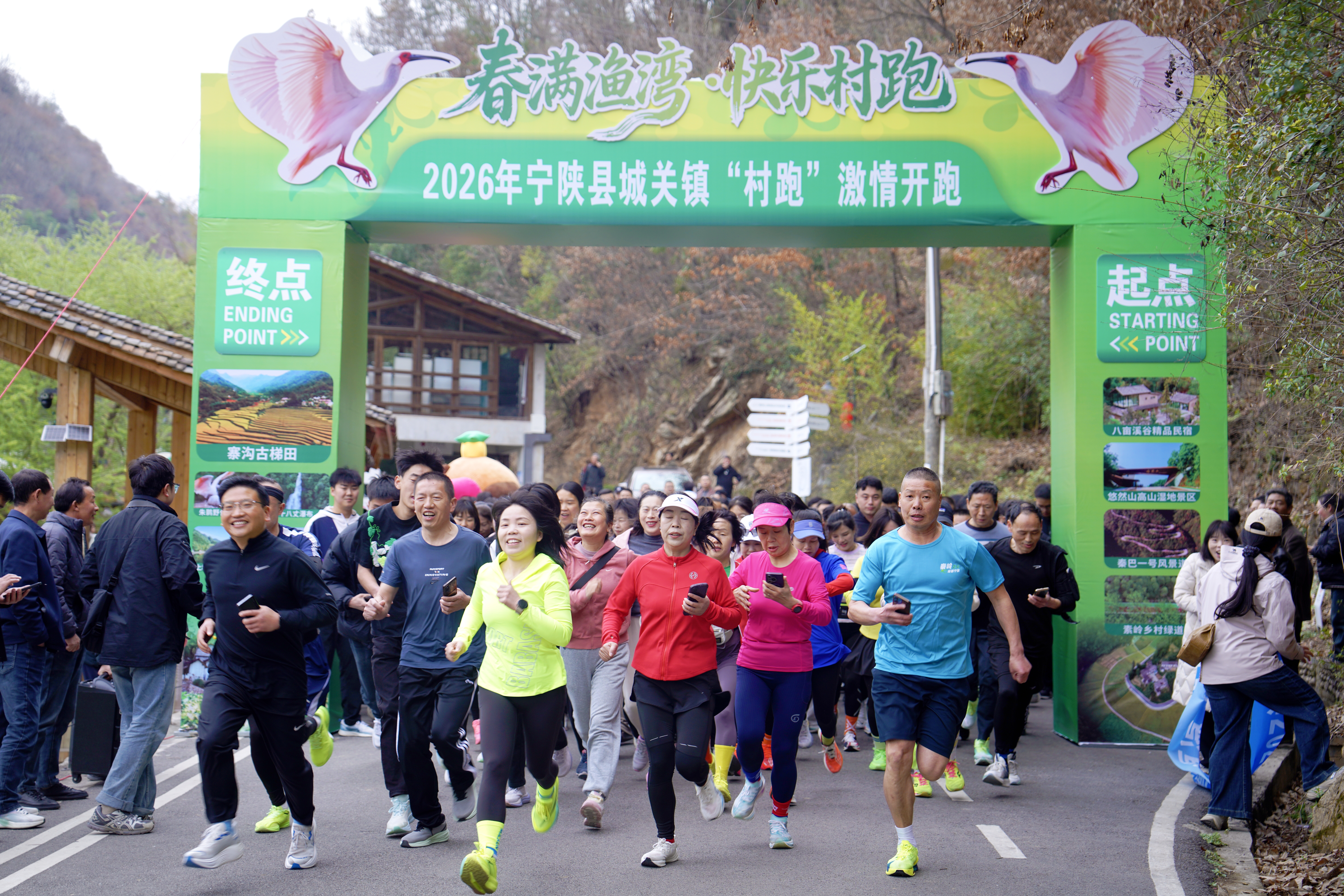 3月21日,“春滿漁灣·快樂村跑”活動(dòng)在城關(guān)鎮(zhèn)漁灣村啟幕。本次賽程沿漁灣村環(huán)形道路跑5圈,全程約9公里。路線從小火車站臺(tái)出發(fā),途經(jīng)不晚小店、稻田舍民宿、漁灣村委會(huì)、漁灣橋頭、石頭廣場(chǎng),最終返回起點(diǎn)。