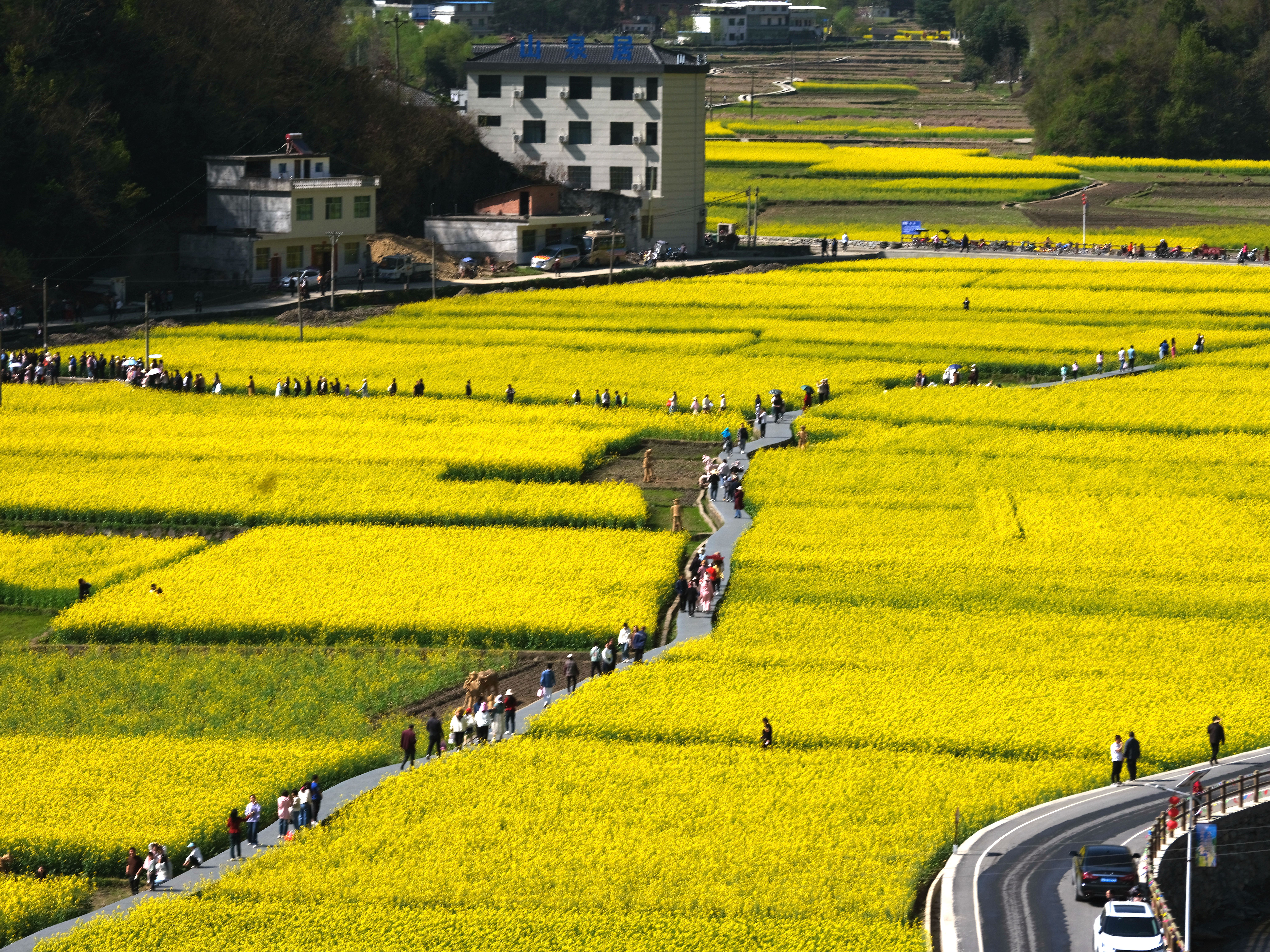 連日來,旬陽市仁河口鎮(zhèn)水泉坪3A級景區(qū)的近千畝油菜花競相綻放,金黃色的花海鋪展如畫,吸引了眾多游客前來踏青賞花。 潘定安 攝