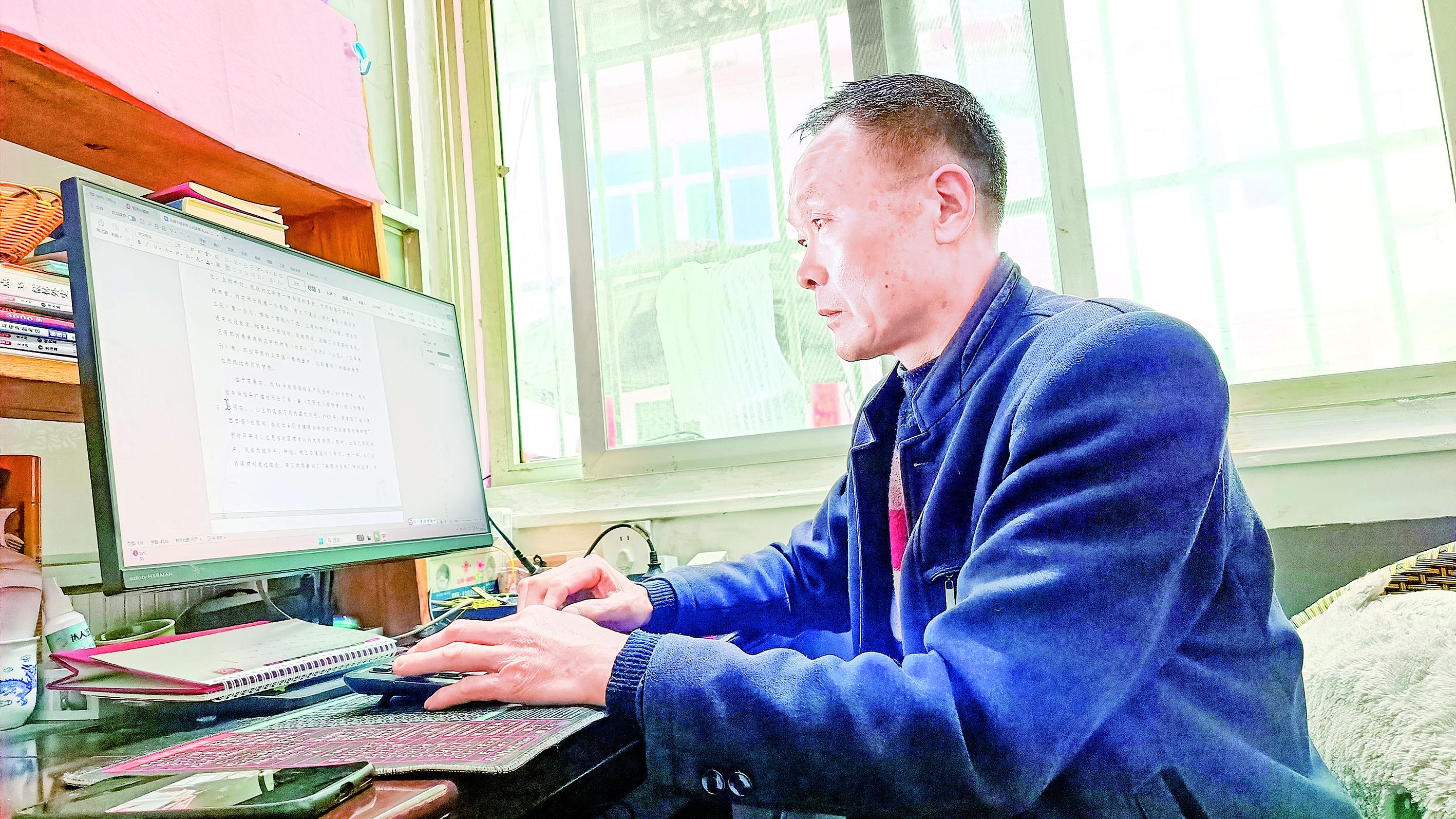 用他自己的話說,當(dāng)時寫的那些文字還顯得很“粗糙”,可他一守就是數(shù)十年。多年來,他踏遍倉上鎮(zhèn)的溝溝岔岔,用心丈量家鄉(xiāng)的每一寸土地,用筆記錄鄉(xiāng)村的點(diǎn)滴變遷,在各級刊物、網(wǎng)站發(fā)表新聞稿件370余篇,五次獲評《安康日報》優(yōu)秀通訊員;散文、游記、詩詞等各類作品累計(jì)900余篇,共計(jì)130多萬字。這些文字,從來不是閉門造車的空想,而是在田埂上、莊稼地里,在喂豬、放牛、砍柴的間隙,一點(diǎn)點(diǎn)積累、一點(diǎn)點(diǎn)書寫而成,每一個字都沾著泥土的芬芳,藏著鄉(xiāng)村的煙火氣。