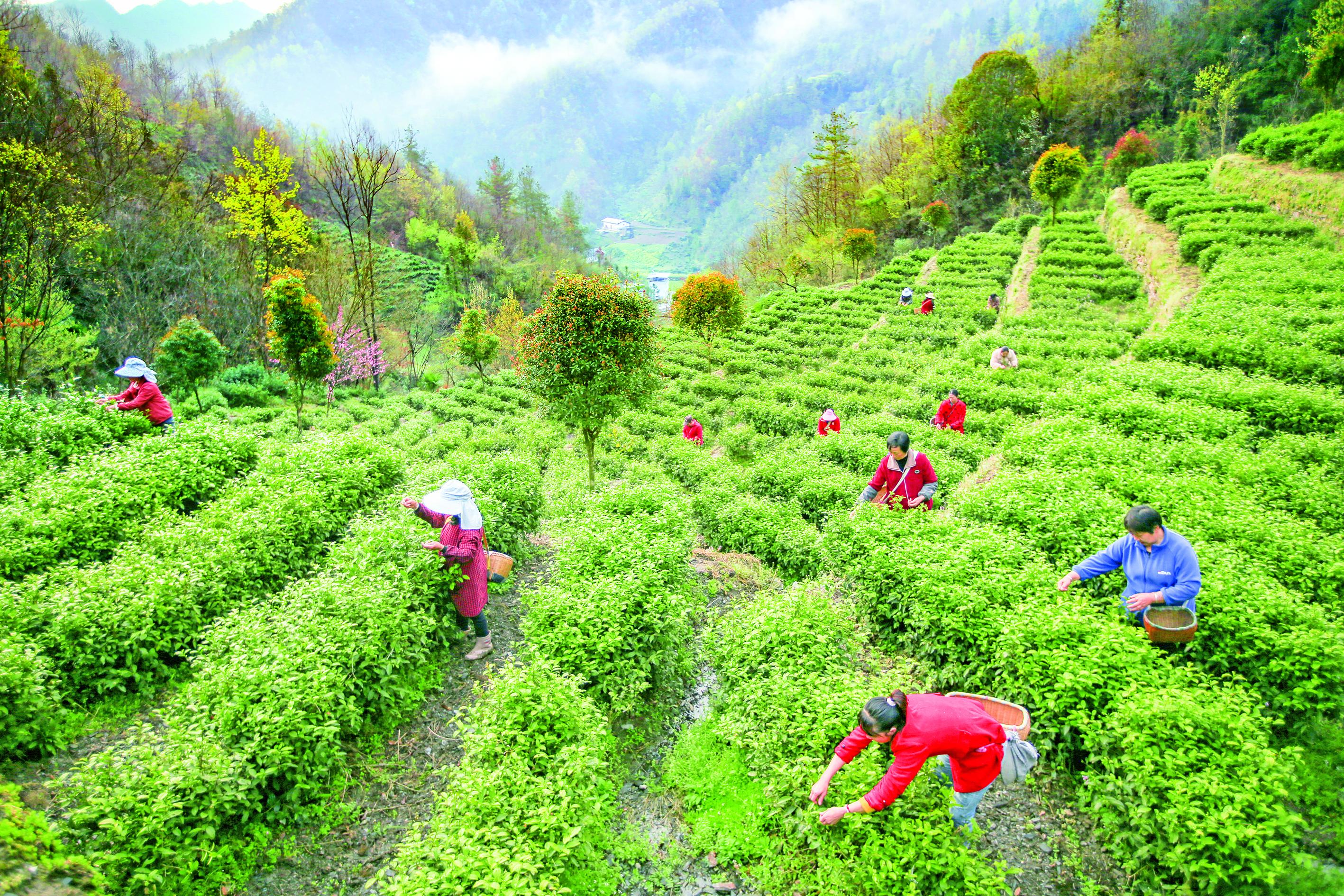 時(shí)下正值采茶高峰期,在白河縣宋家鎮(zhèn)雙喜村茶園內(nèi),茶農(nóng)們正搶抓農(nóng)時(shí)采摘春茶。據(jù)了解,今年該村春茶產(chǎn)量有所提高、質(zhì)量也更優(yōu)良,預(yù)計(jì)整個(gè)春茶采摘期持續(xù)1個(gè)月,全村今年春茶預(yù)計(jì)產(chǎn)量為20余萬(wàn)斤,產(chǎn)值約6000萬(wàn)元。  趙久剛 攝