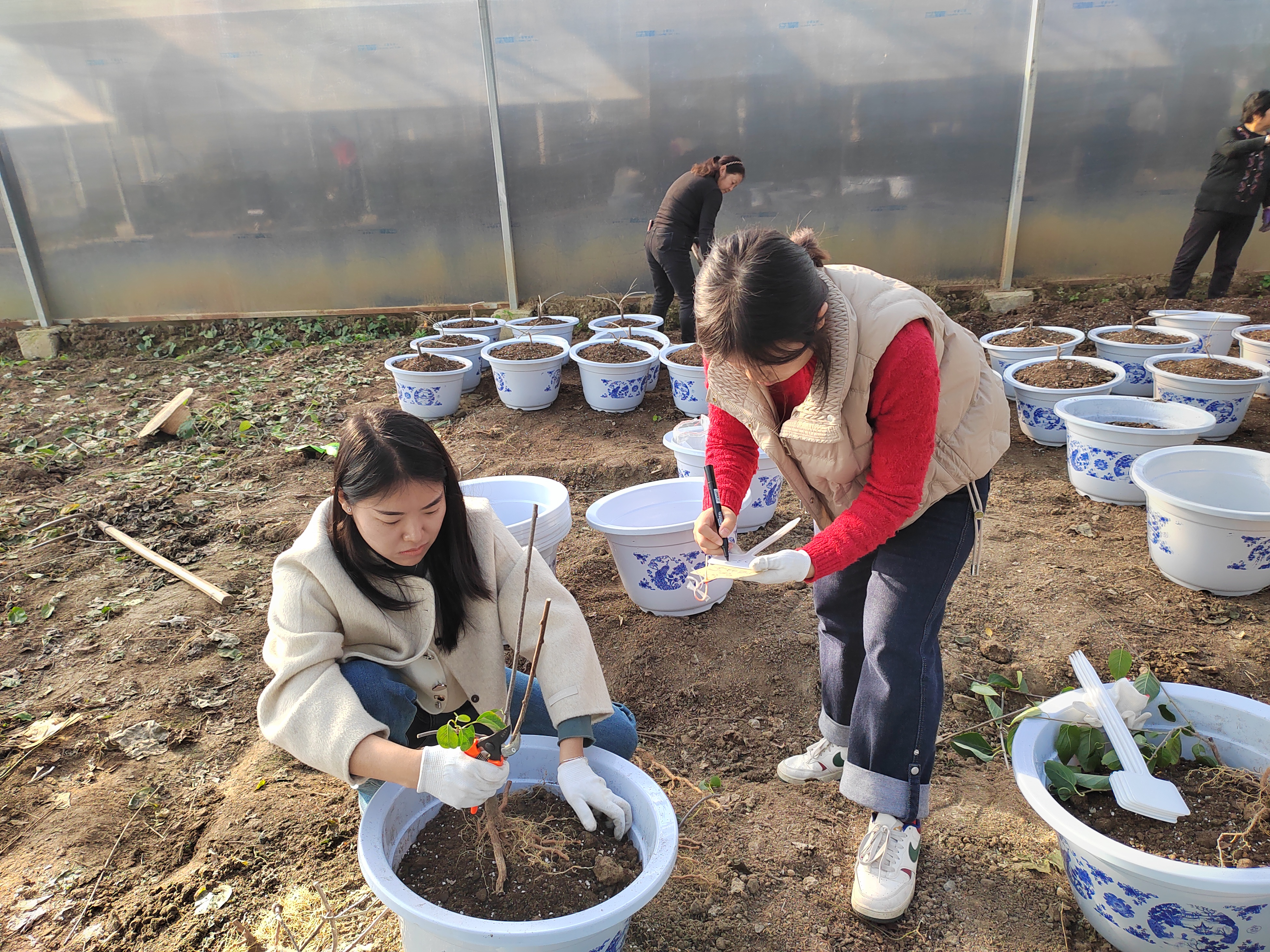 張文慧(左)與團隊成員在試驗基地工作