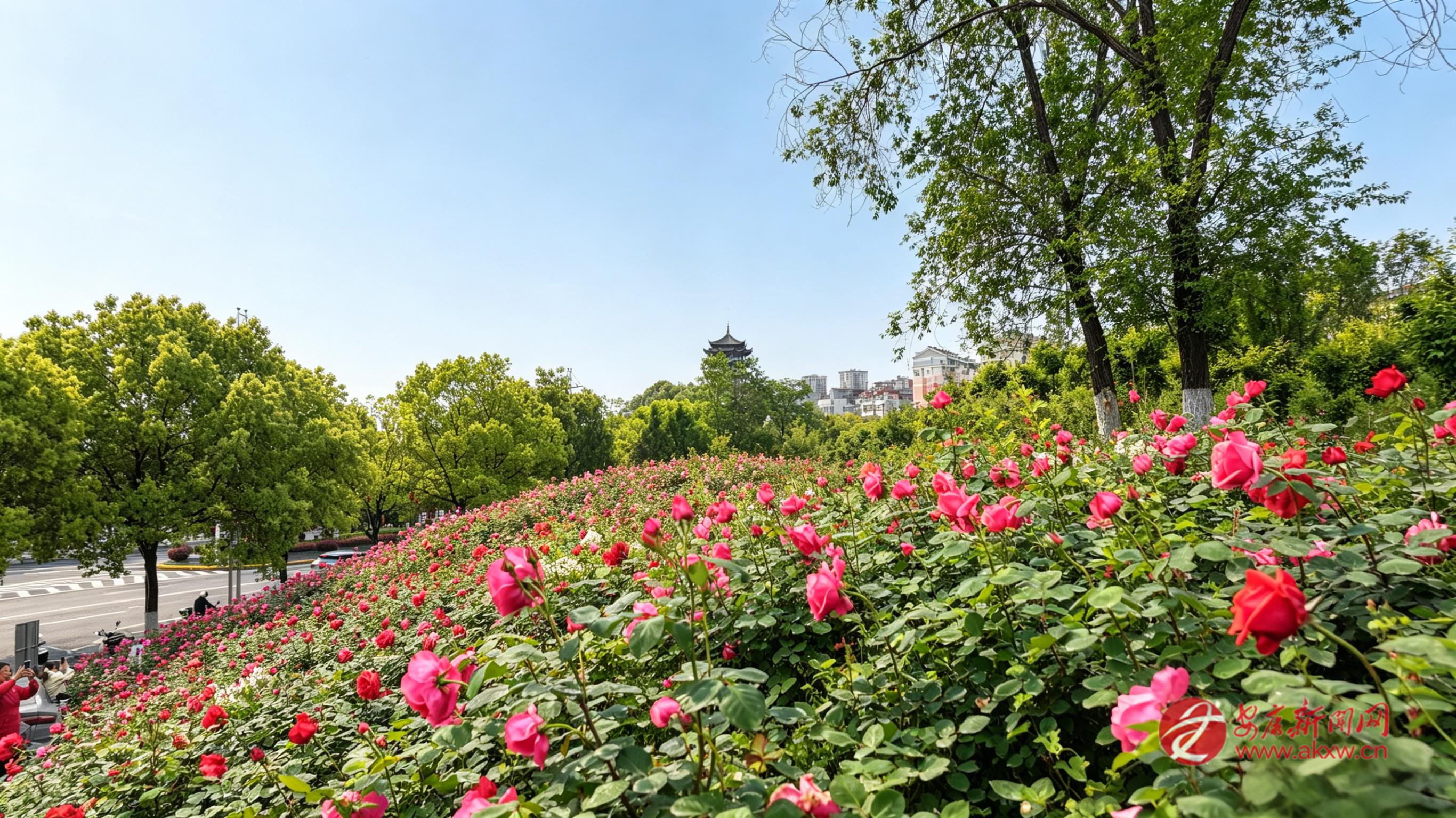 在濱江一號地生態(tài)停車場,月季花海更是成了熱門的“打卡地”。嬌艷的花朵鋪滿綠地,與遠處的青山綠水、城市樓宇相映成趣。前來賞花的市民絡繹不絕,游人身著春裝定格美好瞬間,歡聲笑語回蕩在公園上空。