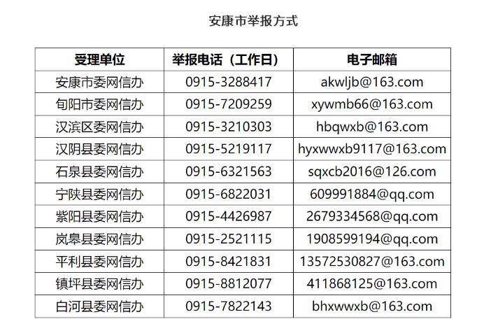 安康“整治‘自媒體’無底線博流量”專項(xiàng)行動舉報(bào)方式