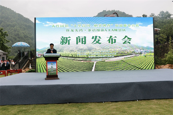 發(fā)布會(huì)上,大竹園鎮(zhèn)人民政府鎮(zhèn)長(zhǎng)鄭濤向大家介紹了大竹園鎮(zhèn)茶旅融合及龍頭灣茶語(yǔ)漫游景區(qū)有關(guān)情況,龍頭灣茶語(yǔ)漫游景區(qū)形象大使單東培做了景區(qū)推介。