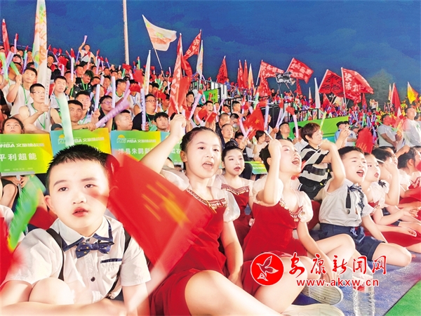 夜幕降臨,華燈初上。開(kāi)幕式在雄壯的國(guó)歌聲中拉開(kāi)帷幕。主會(huì)場(chǎng)內(nèi)聲樂(lè)齊鳴,精彩紛呈;場(chǎng)外流光溢彩,載歌載舞。開(kāi)幕式分為巡游入場(chǎng)、冠軍登場(chǎng)、行政儀式、文藝演出、揭幕比賽五個(gè)章節(jié)。嵐皋縣12個(gè)鎮(zhèn)的巡游隊(duì)伍走上街頭與市民互動(dòng);15支冠軍隊(duì)伍依次入場(chǎng),現(xiàn)場(chǎng)掌聲雷動(dòng);歌舞劇《歡迎你到嵐皋來(lái)》《旗開(kāi)得勝》《巴山魔芋情》以?xún)?yōu)美的詞曲和曼妙的舞姿,展現(xiàn)嵐皋豐厚的旅游資源、特色產(chǎn)業(yè)、人文風(fēng)情等,中國(guó)內(nèi)地歌手沙寶亮傾情演繹的《暗香》等歌曲將現(xiàn)場(chǎng)氣氛推向高潮;在推介互動(dòng)環(huán)節(jié),嵐皋文旅推介官會(huì)同沙寶亮、世界散打冠軍、國(guó)家散打隊(duì)主教練許家恒、全國(guó)競(jìng)走冠軍陳珍、全國(guó)青運(yùn)會(huì)冠軍田紫丹分享了嵐皋的秀美風(fēng)光和民俗文化等文旅資源;絢爛的燈光秀、閃耀全場(chǎng)的煙花秀、56米騰空而起的巨龍交織變幻出一幅幅如夢(mèng)如幻的美好畫(huà)卷;在全場(chǎng)同唱《我和我的祖國(guó)》聲中,文藝演出落下帷幕。