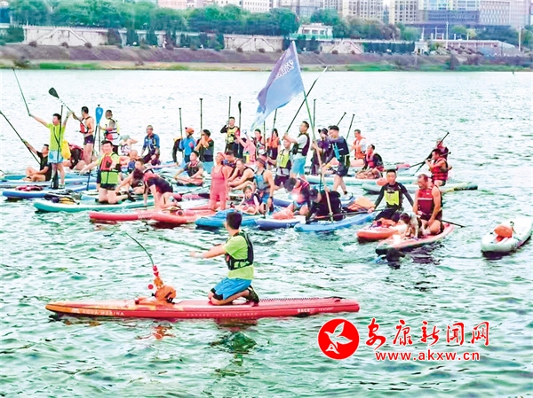 近年來,安康的水上運(yùn)動,尤其是槳板運(yùn)動吸引了越來越多的人關(guān)注,以其能促進(jìn)人的反應(yīng)能力、四肢協(xié)調(diào)能力、平衡能力等特點成為安康“最熱門”的水上運(yùn)動之一,更多市民主動參與其中,在運(yùn)動中收獲健康和快樂。很多人在岸邊看見了槳板也會主動上前詢問,這讓吳忠很高興,他說,從一開始的門可羅雀到現(xiàn)在槳板群的群友已經(jīng)有220多個人,槳板運(yùn)動的魅力讓更多人遠(yuǎn)離了麻將桌、酒桌,放下了手機(jī),意識到了鍛煉身體的好處。醫(yī)生、警察、個體經(jīng)營者、普通職員……各行各業(yè)的人因為興趣加入了槳板運(yùn)動的隊伍之中,又把槳板的魅力推向更多人,大家彼此介紹、互相熟悉了解,在收獲友誼和健康的同時,逐漸組成了一個“槳板社會”。