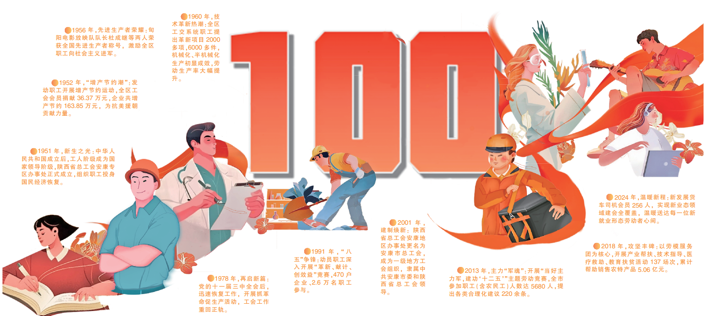 2025年,是全國總工會(huì)成立100周年,作為工人階級(jí)和廣大勞動(dòng)群眾的堅(jiān)強(qiáng)后盾,全國總工會(huì)為我國的社會(huì)進(jìn)步和經(jīng)濟(jì)發(fā)展做出了不可磨滅的貢獻(xiàn)。安康工運(yùn)事業(yè)從1925年漢水畔第一聲“勞工萬歲”的吶喊,到深度參與三線建設(shè)、脫貧攻堅(jiān)、生態(tài)經(jīng)濟(jì)等重大戰(zhàn)略,再到新時(shí)代百萬職工投身幸福安康建設(shè)的鏗鏘步履,始終與黨的事業(yè)血脈相連,與城市發(fā)展同向同行。