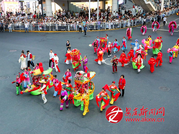 白天的安康讓人流連忘返,夜色中的安康更散發(fā)著獨特魅力。在安康中心城區(qū)繁華街區(qū)舉行的,由舞龍舞獅、漢調(diào)二黃、漢江漁歌等方陣組成的民俗、漢服、毛玩三大主題巡游活動,吸引萬千游客沉浸式體驗安康的多彩文化。當暮色籠罩漢江,“一江兩岸”燈光秀點亮幸福安康,“安康夜 最安康”演出活動以光影為筆、星河為幕,給市民、游客帶來“晝賞民俗、夜醉星河”的全時段體驗。