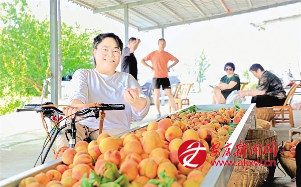 夜色降臨,桃林亮起太陽能路燈。暖黃的光暈中,犬吠驚起一陣山雀的夜啼,她親手嫁接的桃樹碩果盈枝。那座被李丹和父親開墾出的“桃花源”,正在成為村里群眾通向幸福生活的接穗。