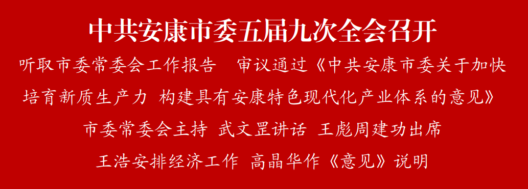 全會(huì)以習(xí)近平新時(shí)代中國(guó)特色社會(huì)主義思想為指導(dǎo),深入學(xué)習(xí)貫徹黨的二十大和二十屆二中、三中全會(huì)精神,貫通落實(shí)習(xí)近平總書(shū)記歷次來(lái)陜考察重要講話(huà)重要指示,全面落實(shí)省委十四屆八次全會(huì)部署,聽(tīng)取市委常委會(huì)工作報(bào)告,審議通過(guò)《中共安康市委關(guān)于加快培育新質(zhì)生產(chǎn)力 構(gòu)建具有安康特色現(xiàn)代化產(chǎn)業(yè)體系的意見(jiàn)》,安排下半年重點(diǎn)任務(wù),達(dá)到了統(tǒng)一思想認(rèn)識(shí)、凝聚奮進(jìn)力量的目的。