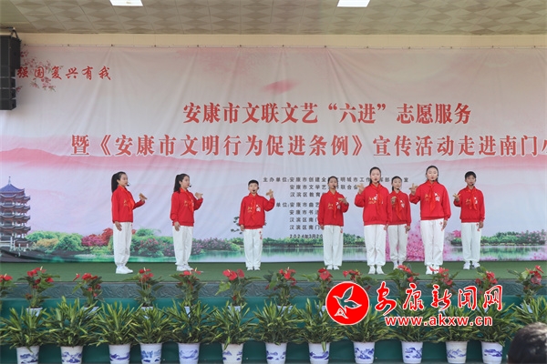 本網(wǎng)訊(見習(xí)記者 張璇)3月20日,由市創(chuàng)文辦、市文聯(lián)主辦的“強(qiáng)國復(fù)興有我”安康市文聯(lián)文藝“六進(jìn)”志愿服務(wù)暨《安康市文明行為促進(jìn)條例》宣傳活動(dòng)在漢濱區(qū)南門小學(xué)舉行。
