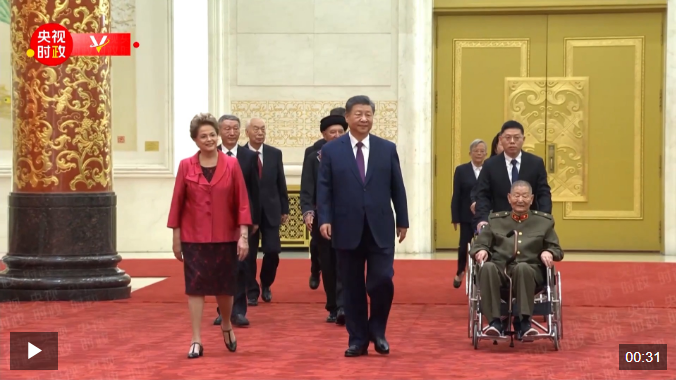 習(xí)近平指出,75年來,世界上有很多與中國人民志同道合、風(fēng)雨同舟的老朋友、好朋友,今天被授予“友誼勛章”的迪爾瑪·羅塞芙女士就是其中的杰出代表。中國人民永遠(yuǎn)不會(huì)忘記那些為中國發(fā)展、增進(jìn)中國人民同各國人民友誼作出突出貢獻(xiàn)的國際友人。中國人民愿攜手世界各國人民,維護(hù)世界和平,促進(jìn)共同發(fā)展,推動(dòng)構(gòu)建人類命運(yùn)共同體,開創(chuàng)人類更加美好的未來。