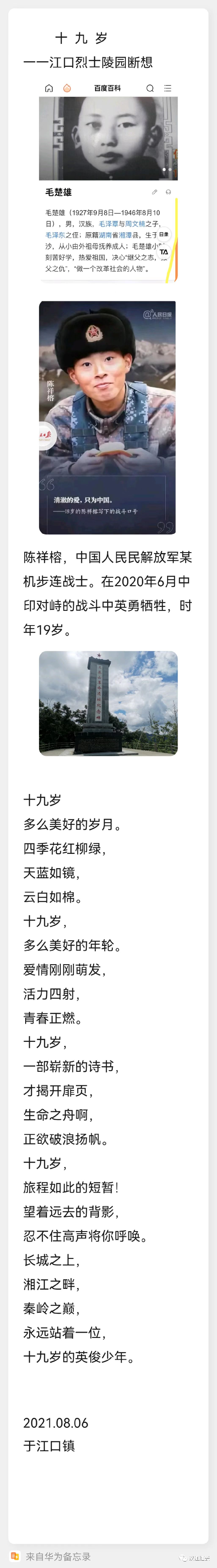 時間帶不走一顆永遠(yuǎn)向上的心,一代人終將老去 ,但 總 有人正年輕。遙望遠(yuǎn)方的光芒,腳下自有力量。時代在進(jìn)步,民族在振興,青年 任重而道遠(yuǎn)。不忘初心,政治 鑄魂,傳承紅色基因,年輕人才會沿正確的方向前行。一百年以前,魯迅曾說過"愿中國青年都擺脫冷氣,只是向上走,不必聽自暴自棄者流的話,能做事的做事,能發(fā)聲的發(fā)聲。有一分熱,發(fā)一分光。就令螢火一般,也可以在黑暗里發(fā)一點(diǎn)光,不必等候炬火。此后如竟沒有炬火,我便是唯一的光。”一百年來,螢火終成火炬,千萬青年的光和熱照耀溫暖了這個世界。光明在前,理想存胸,任山高路遠(yuǎn),總有人為此而往!誰也不會忘記這十九歲的青春。