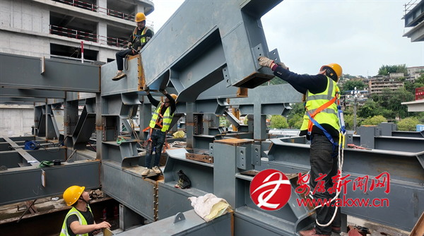 日前,在旬陽太極城綜合文化旅游服務中心建設現(xiàn)場,一線施工人員正以飽滿的工作熱情投入生產。該綜合性項目由康養(yǎng)酒店與住宅兩大板塊構成,康養(yǎng)酒店已順利完成主體封頂,全面轉入鋼結構組裝階段。烏蒙 攝