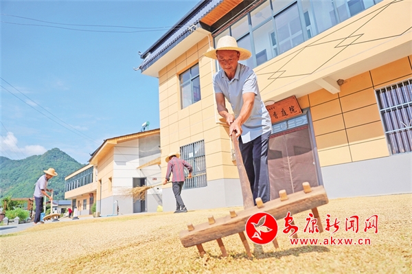 嵐皋縣南宮山鎮(zhèn)桂花村村民利用晴好天氣晾曬谷物。張?chǎng)?攝