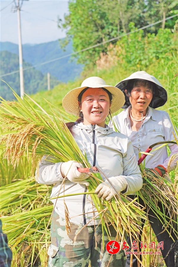 嵐皋縣南宮山鎮(zhèn)桂花村水稻喜迎豐收,今年預(yù)計(jì)稻谷產(chǎn)量達(dá)到45萬(wàn)多公斤,帶動(dòng)當(dāng)?shù)卮迕駪艟暝鍪?000元。柴可庭 攝