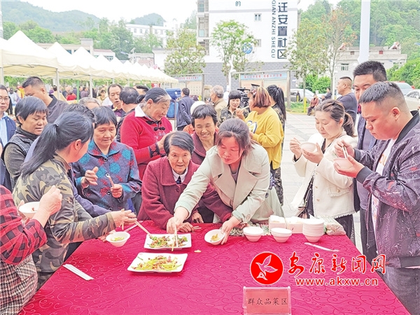 比賽中還設(shè)置了群眾品鑒環(huán)節(jié),60多道精心制作的美味佳肴讓參與群眾一飽口福。紅升社區(qū)居民汪德玉說:“我們縣河是個(gè)山清水秀的好地方,舉辦美食大賽這是第一次,能吸引各個(gè)地方的游客來品嘗我們縣河的味道,特別是辣子雞,做得很好。”