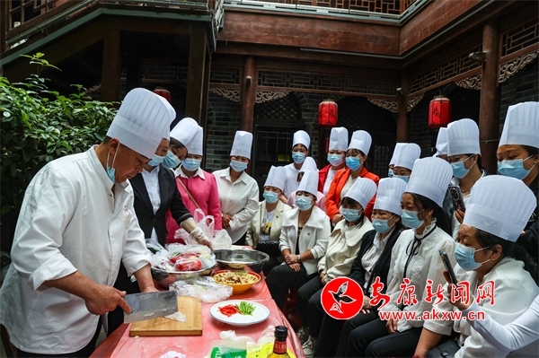 但隨著時代的發(fā)展,人們消費理念的更新,能制作傳統(tǒng)白河“三點水”宴席的人越來越少,偌大一個縣,找不出幾個能夠獨當一面制作傳統(tǒng)宴席白河“三點水”的廚師。所以他毅然決定辭去高薪的主廚工作,奔走于鄉(xiāng)村,上門做家政服務,在實地操作技藝中傳幫帶一批會制作白河“三點水”宴席的鄉(xiāng)廚。