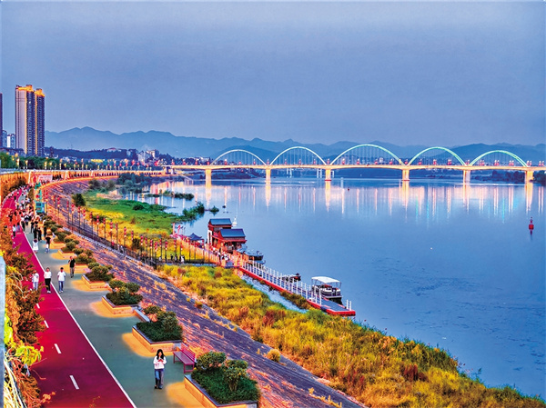 五月,我獨(dú)自來(lái)到安康的江南大堤,沿著漢江邊的人行步道順?biāo)滦!?/div>